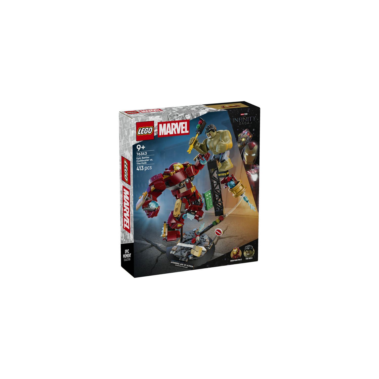 9 yaş ve üzeri erkek ve kız çocuklara yönelik LEGO® ǀ Marvel Efsanevi Savaş: Hulkbuster, Hulk’a Karşı (76343) yapım setiyle Marvel Studios Avengers: Ultron Çağı aksiyonunu canlandırın. Iron Man ve Hulk minifigürlerinin yanı sıra simgeleşmiş Hulkbuster zırhını içeren bu büyüleyici yapım seti, çocuklara sınırsız yaratıcı rol yapma oyunları ve yaratıcı sergileme fırsatları sunar. Hulk’ın silah olarak kullanabileceği çelik yapılar ve trafik lambası gibi kalıntılarla dolu bir sokak sahnesinde, Iron Man, Hulkbuster zırhının yardımıyla Hulk ile savaşır. Hulkbuster, duruşunun maksimum ayarlanabilmesi için tam eklemlidir. Çocuklar, sağlam tabanı ve isim levhası ile modellerini oda dekoru olarak kullanabilir ya da minifigürleri ayırarak kendi Süper Kahraman maceralarını oluşturabilir. Bu set, harika bir hediye fikridir ve LEGO Builder uygulamasıyla çocuklar seti güvenle inşa edebilir, kolay anlaşılır dijital talimatlarla modeli yakınlaştırabilir, 3 boyutlu döndürebilir ve ilerlemeyi takip edebilir. Yapım setinde 413 parça bulunur.;