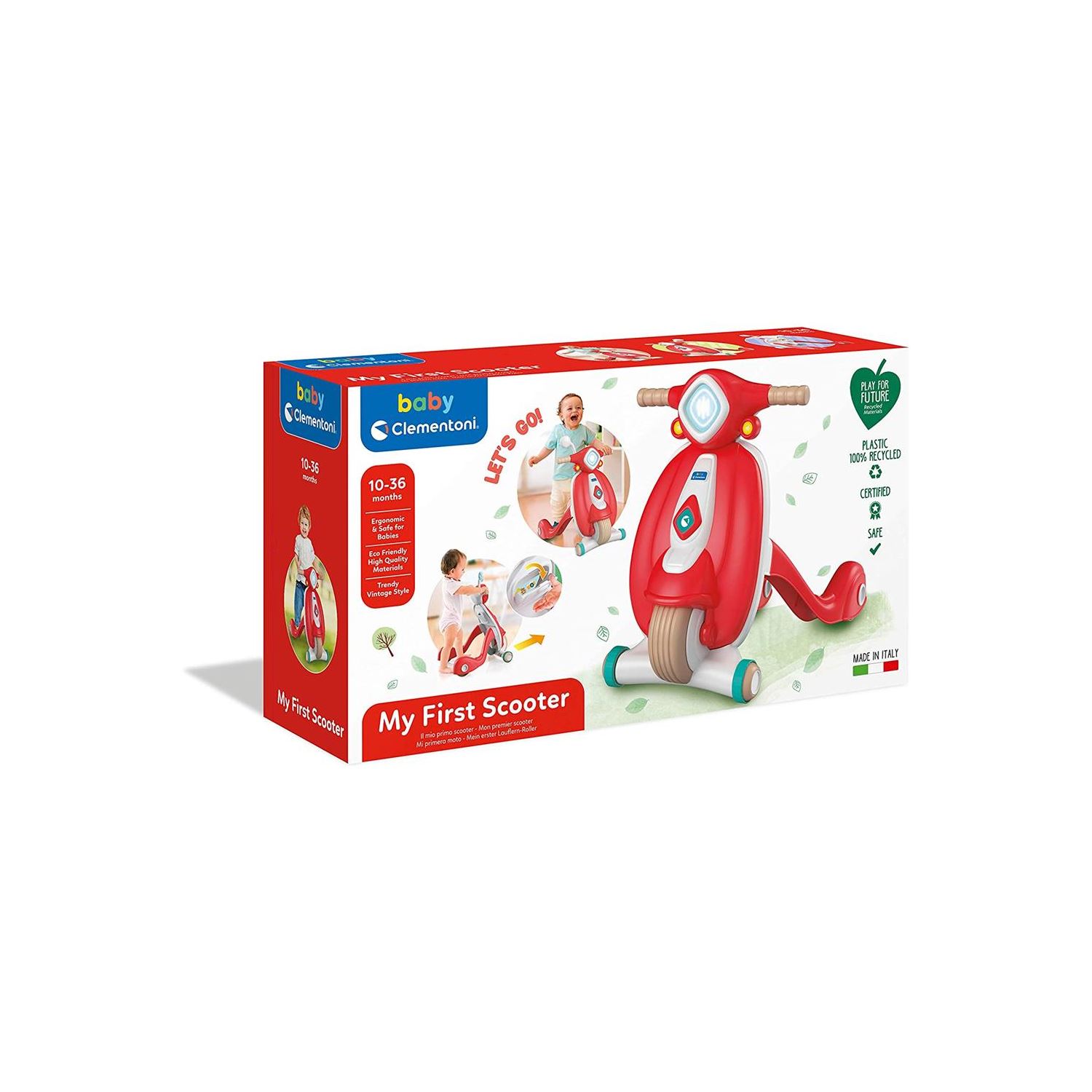 İlk adımlarını atarken bebeğinizin eğlenmesine yardım eden %100 geri dönüşümlü malzemeden üretilmiş nostaljik tarzda scooter yürüteç! Scooter şekli verilmiş yürüteç bebeğinizin motor becerilerini, koordinasyonunu ve uzamsal algısını geliştirir. Bebeklerin eşyalarını koyabileceği küçük bir bölmeye sahiptir.