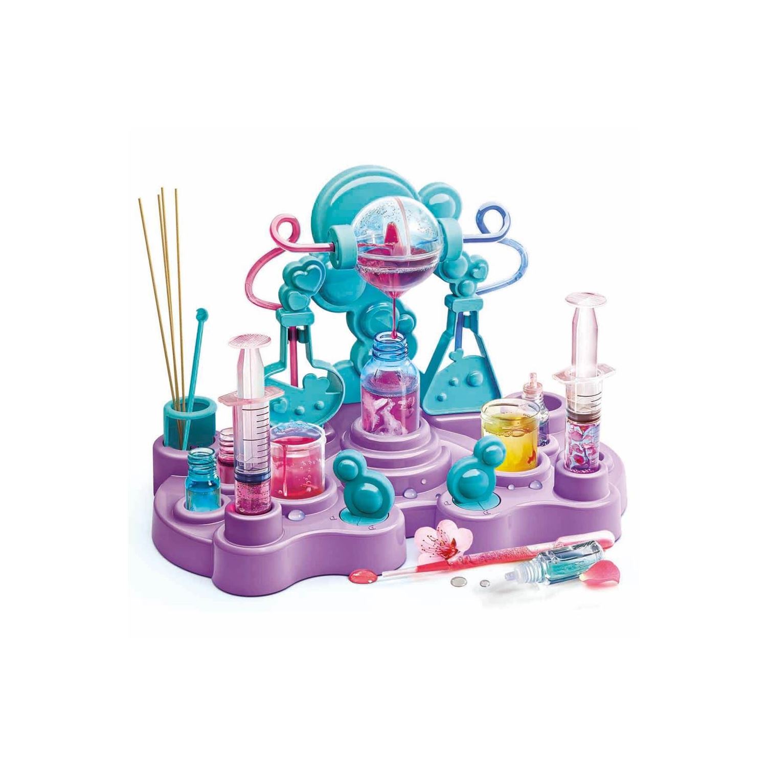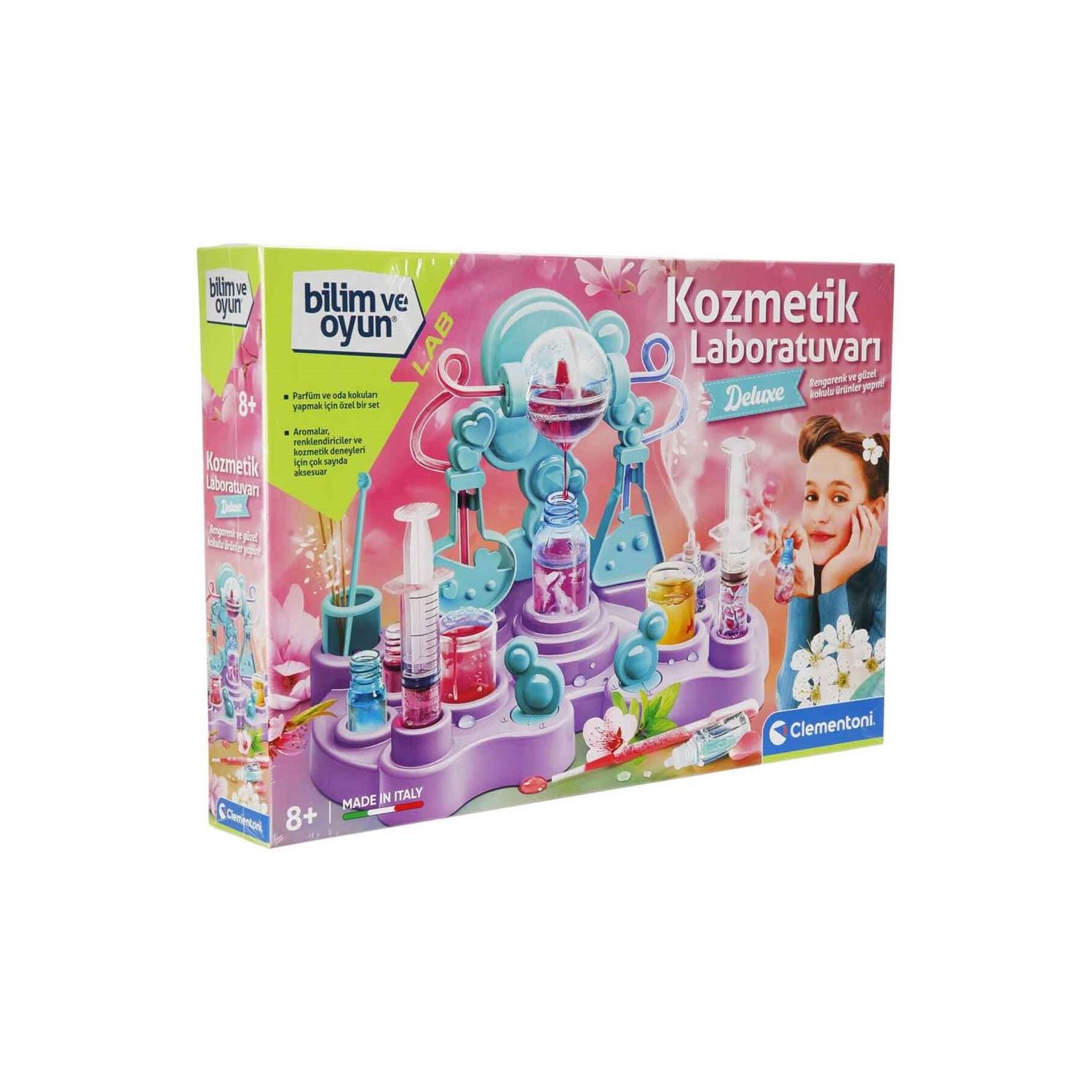 Parfümümü çok soran olmuş... Kendim yaptım! Güzel kokular sizin de hoşunuza gidiyor mu? Peki, Bilim ve Oyun - Kozmetik Laboratuvarı Deluxe ile oda kokusu ve parfüm yapabileceğinizi biliyor muydunuz? Kozmetik ürünlerine merakınız var ise kendi laboratuvarınızı hemen kurup mis kokulu ürünler yapabilirsiniz. Kim bilir, belki de kendi imza parfümünüzü yaratabilirsiniz! Oda kokusu ile evinizi saran büyülü bir atmosfer oluşturmak mı, yoksa şeftali kokusunun tatlı etkisi ile kendinizi bir meyve bahçesinde hissetmek mi istiyorsunuz? Belki de nane kokusunun ferahlatıcılığı ile gün boyu enerjik kalmak… Yaratıcılığınızı konuşturun, bilimin eğlenceli yanlarını keşfedin ve her adımda yeni bir şey öğrenmenin keyfini çıkarın. Herkes yaptığınız kokuları çok beğenebilir ve sizden onu nereden aldığınızı öğrenmek isteyebilir. Ancak unutmayın, bu bir sır! Laboratuvar rengi değişiklik gösterebilir. Çocukların; el becerilerini, yaratıcılıklarını, tasarım kabiliyetlerini ve hayal güçlerinin gelişmesine yardımcı olan tasarım setidir. Kutu içerisinde; laboratuvar yapım parçaları, 2 adet parfüm bazı, 2 adet renklendirici, sprey şişesi, deney kapları, pipetler, karıştırıcı, 2 adet şırınga, küçük tüpler, tahta çubuklar, taban ayağı ve resimli kullanım kılavuzu bulunmaktadır. İtalya'da tasarlandı ve geliştirildi.