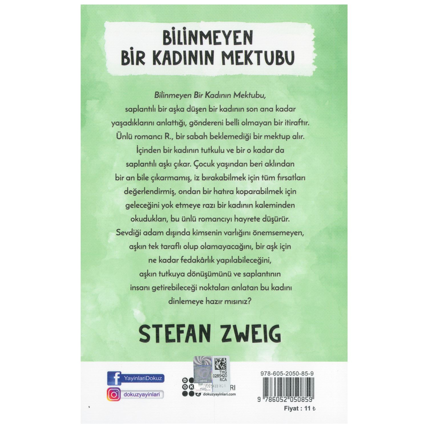 Bilinmeyen Bir Kadının Mektubu, saplantılı bir aşka düşen bir kadının son ana kadar yaşadıklarını anlattığı, göndereni belli olmayan bir itiraftır. Ünlü romancı R., bir sabah beklemediği bir mektup alır. İçinden bir kadının tutkulu ve bir o kadar da saplantılı aşkı çıkar. Çocuk yaşından beri aklından bir an bile çıkarmamış, iz bırakabilmek için tüm fırsatları değerlendirmiş, ondan bir hatıra koparabilmek için geleceğini yok etmeye razı bir kadının kaleminden okudukları, bu ünlü romancıyı hayrete düşürür. Sevdiği adam dışında kimsenin varlığını önemsemeyen, aşkın tek taraflı olup olamayacağını, bir aşk için ne kadar fedakârlık yapılabileceğini, aşkın tutkuya dönüşümünü ve saplantının insanı getirebileceği noktaları anlatan bu kadını dinlemeye hazır mısınız?