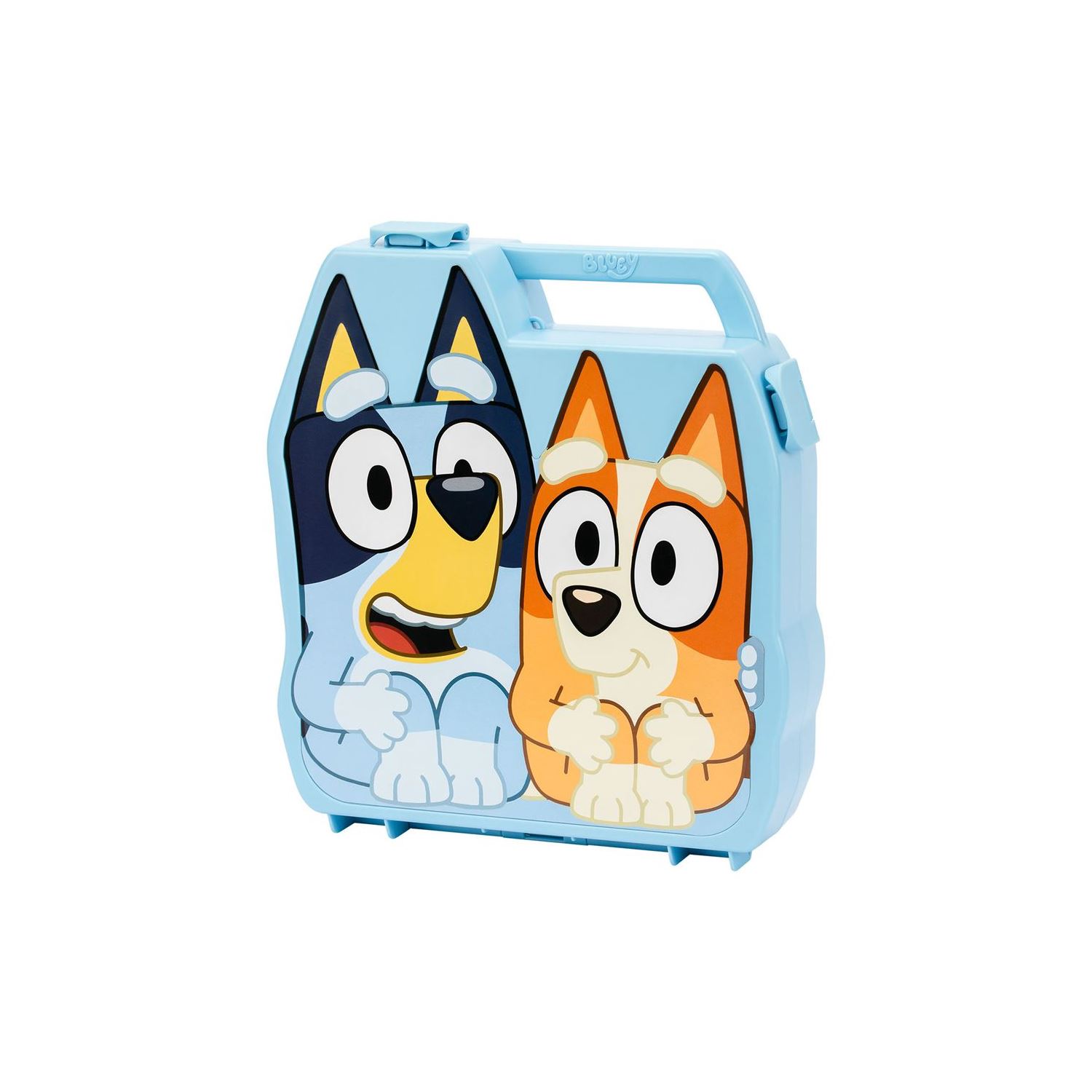 Bluey temalı dış tasarım ve taşıma sapı ile çocuklar figürleri ve aksesuarları kolayca yanlarında götürebilir.