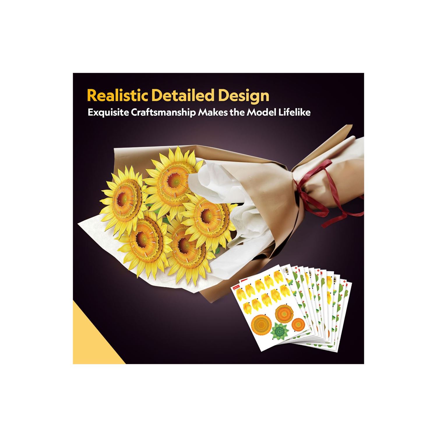 Güneşin en güzel yansıması ayçiçekleri, şimdi Cubic Fun’ın yaratıcı dünyasıyla masanızda açıyor! Bu özel tasarım, ayçiçeklerinin karakteristik sarı taç yapraklarını ve merkezindeki pikselli tohum dokusunu 3 boyutlu bir puzzle olarak sunuyor. Kendi ellerinizle inşa edeceğiniz bu buket, yaşam alanınıza anında pozitif bir enerji katacak.