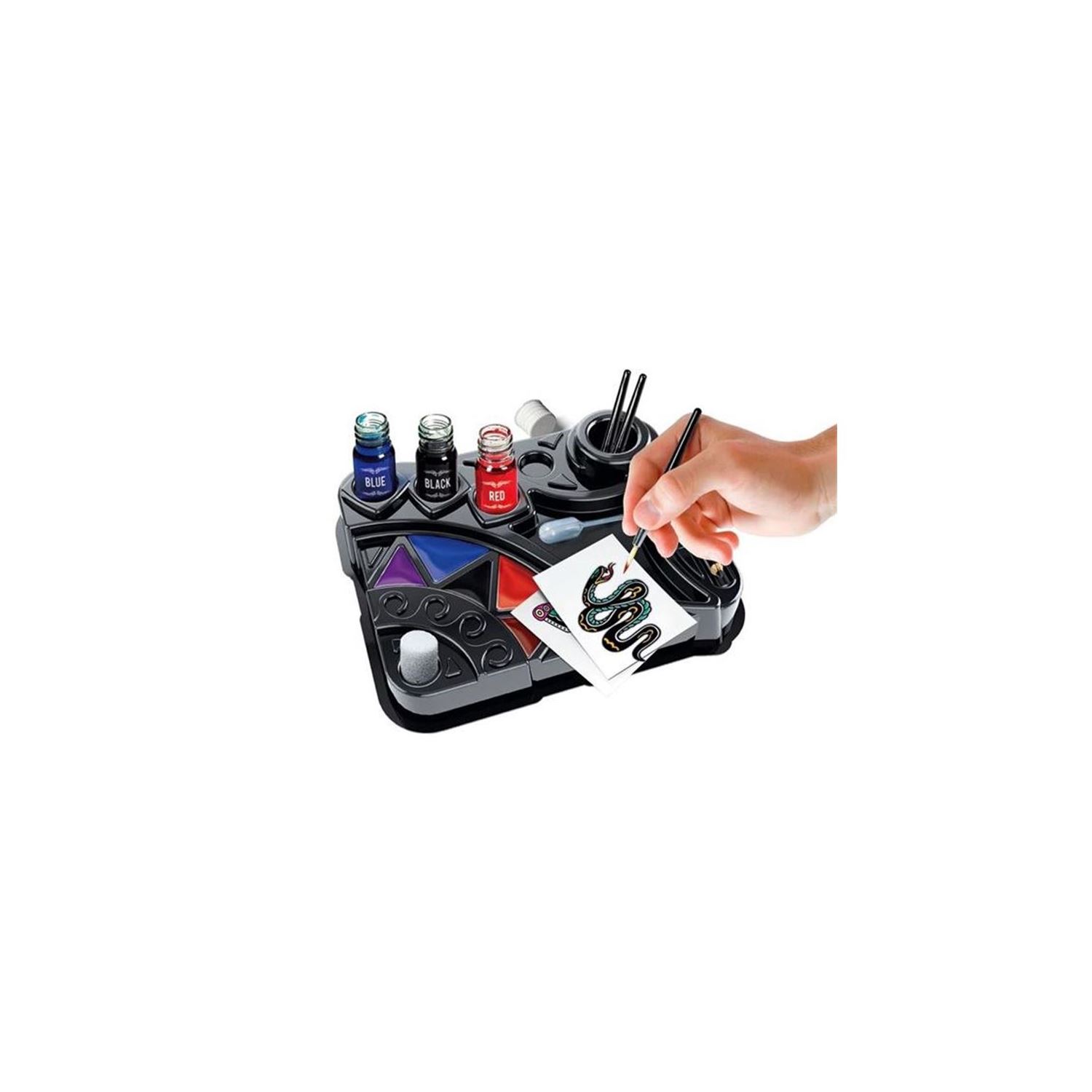 Aynı zamanda gerçek bir dövme tutkunu erkeğinkiler gibi modaya uygun dövmeler yaparken kullanacağın tüm gerekli malzemeleri içeren ve inanılmaz bir set işlevi gören bir laboratuvar! Gerçek bir dövme ustası gibi elinle dövmeler çizebileceğin bir çalışma tezgahı, keçeli kalemler, sıvı renklendiriciler ve stensiller içerir. Kullanma kılavuzunda dövme yapma yolları tüm adımlarıyla açıklanmıştır ve çocuğa eğlenceli ve öğretici oyun deneyimi boyunca rehberlik sağlanır. Set içerisindeki tüm maddeler ve malzemeler cilt üzerinde güvenli bir biçimde kullanılabileceğinden emin olmak amacıyla testlerden geçirilmiştir. Yaratıcılığı ve el becerilerini harekete geçiren bir oyun. Kutu boyutları: 38.5 x 28.2 x 7.7 cm.