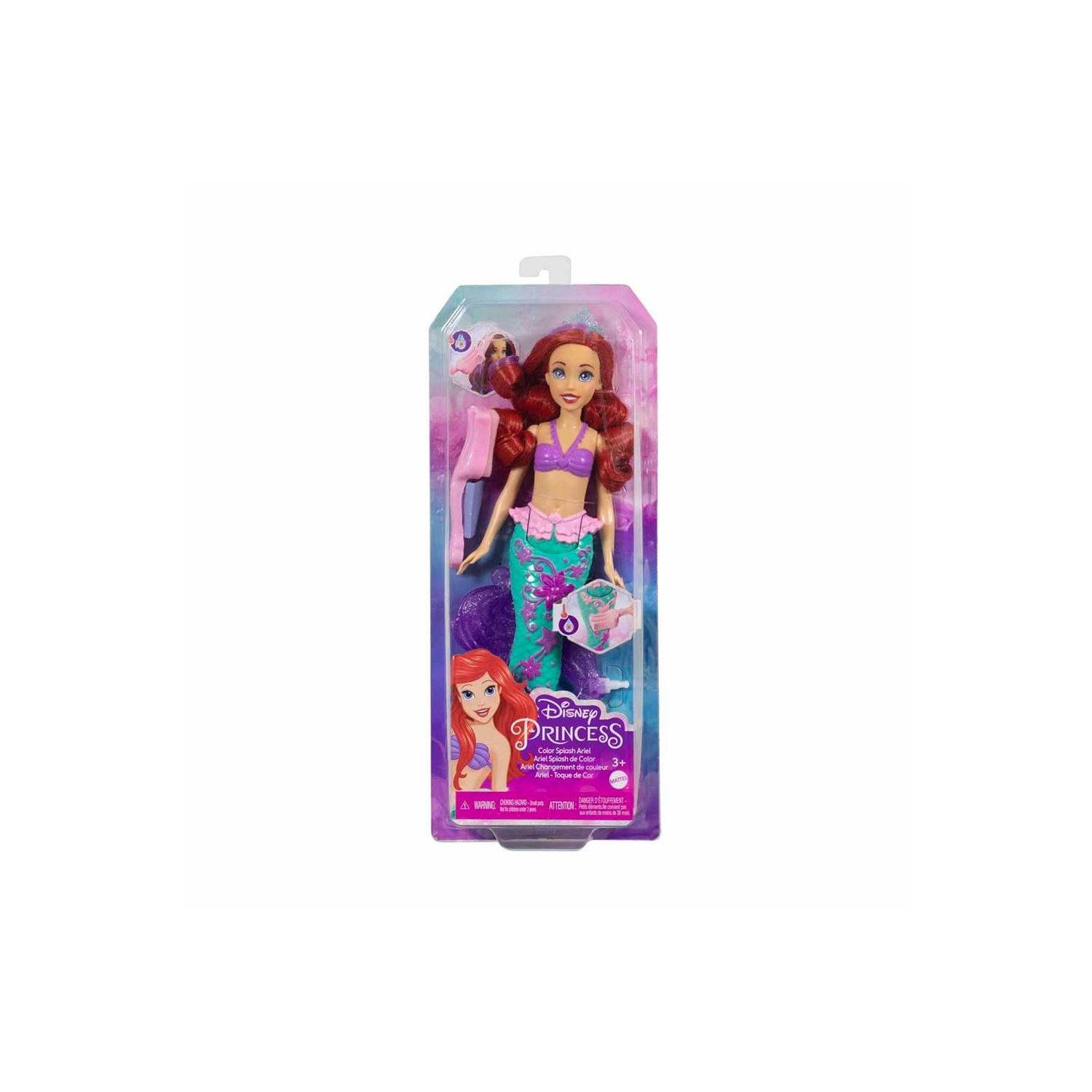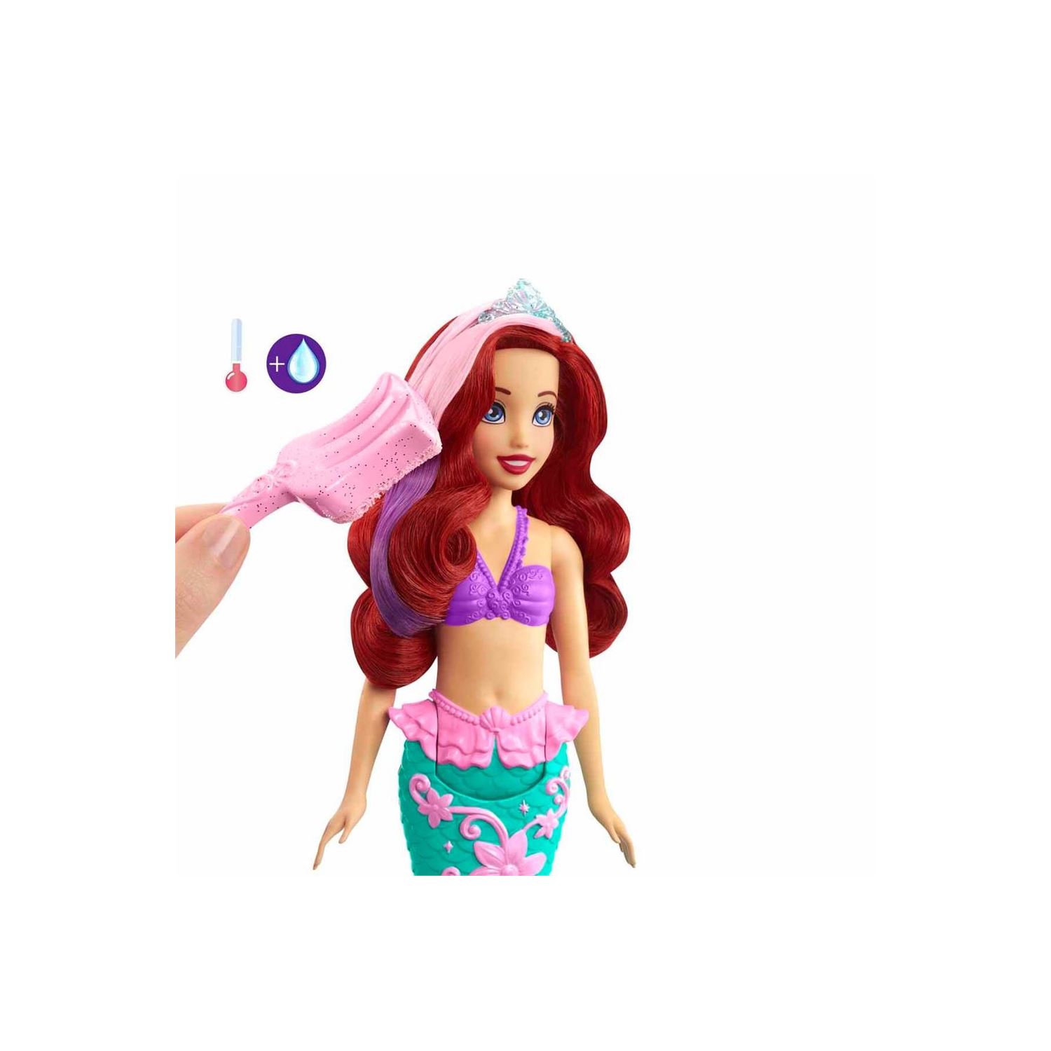Rengarenk Ariel bebeğin saçı ve kuyruğu suyla etkinleşen renk değiştirme özelliğine sahiptir. Filmdeki çatala benzeyen süngeri kullanarak çocuklar bu büyülü renk değiştirme oyununu tekrar tekrar oynayabilir. Bebek tek başına ayakta duramaz. Renkler ve süslemeler çeşitlilik gösterebilir.