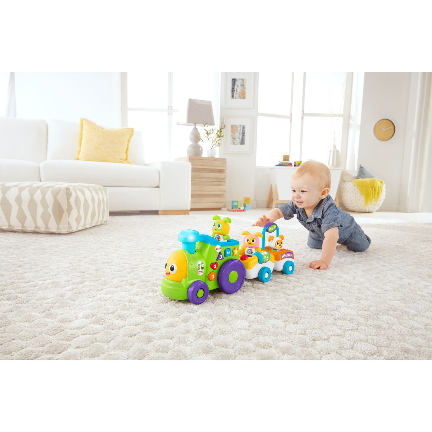 | Minik tren kondüktörünüz bu motorlu treni çuf çuflamak için ışıklı bacaya bastığında, alfabeyi, renkleri, şekilleri ve daha fazlasını tanıtan ilgi çekici müzik ve cümleleri duyar! Ayrıca, Yaşa Göre Gelişim™ teknolojisi ile, öğrenme eğlencesini bebeğinizin yaşına ve gelişim evresine göre değiştirebilirsiniz! Gelişim ve oyun bir arada™ Akademik: Eğlenceli şarkılar ve cümleler bebeğinize alfabeyi, renkleri, şekilleri ve daha fazlasını tanıtır. Kaba motor becerileri: Miniğiniz, BeatBo'nun dostlarının motorlu trenle ilerlediğini görünce, arkalarından emeklemeye teşvik edilir! Merak: Bebeğiniz duman bacasına basarak ışıkları, sesleri ve hareketi nasıl aktive ettiğini keşfederken, neden ve sonucu anlamaya başlar. |