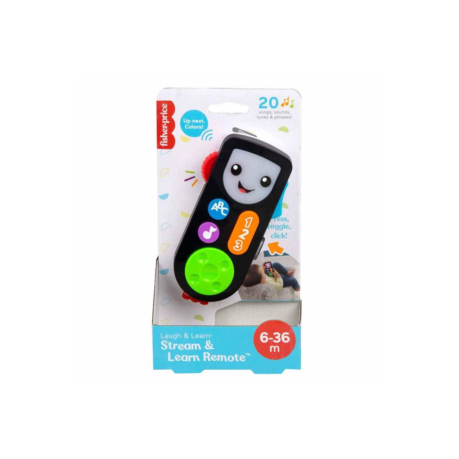 Bu taklit uzaktan kumanda yetişkinlerin kullandığıyla aynı fakat minik ellerin kavrayabileceği, basabileceği, tıklayabileceği, açıp kapatabileceği boyutta. Bebeğiniz ABC, 123 veya müzik düğmelerine bastığında sevimli ekranın ışığı yanar ve 20'den fazla şarkı, ses ve ifade dinler. İfadeler harfler, rakamlar ve renkleri içerir.