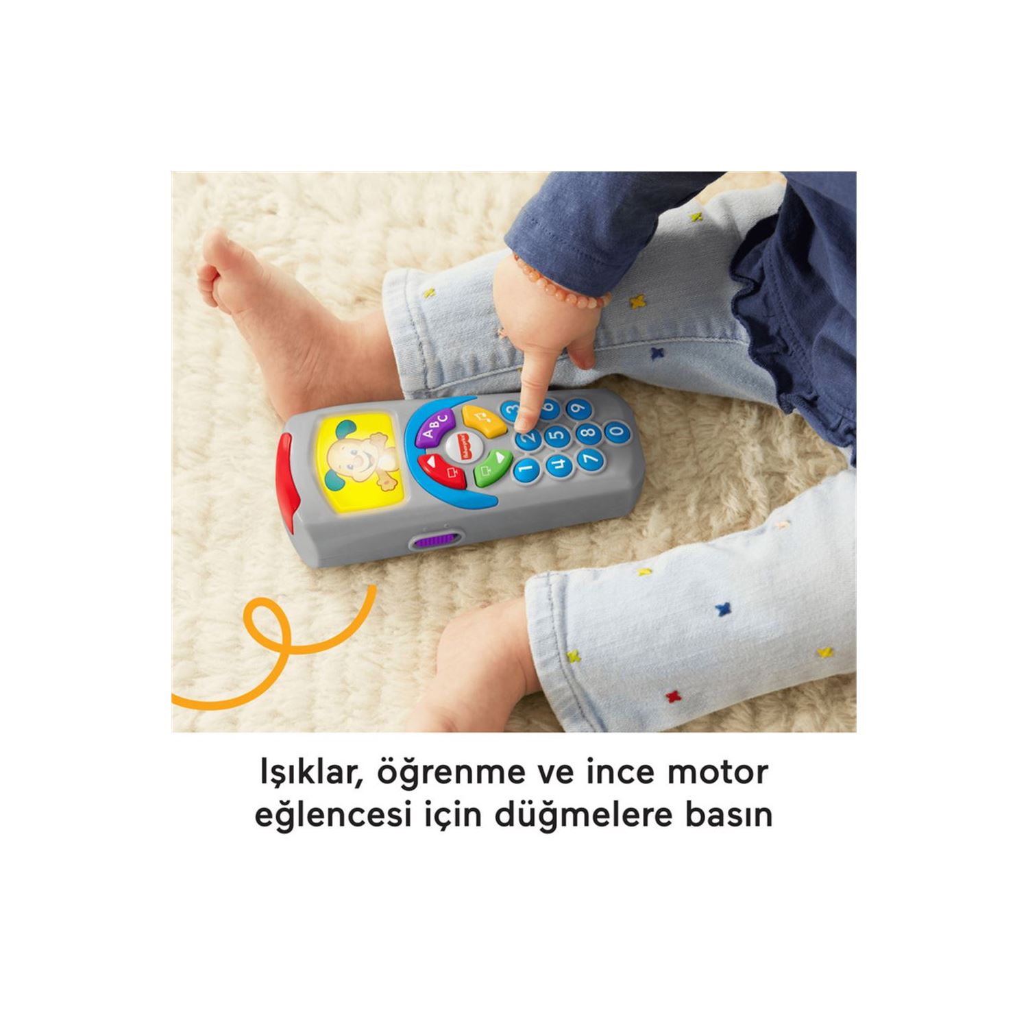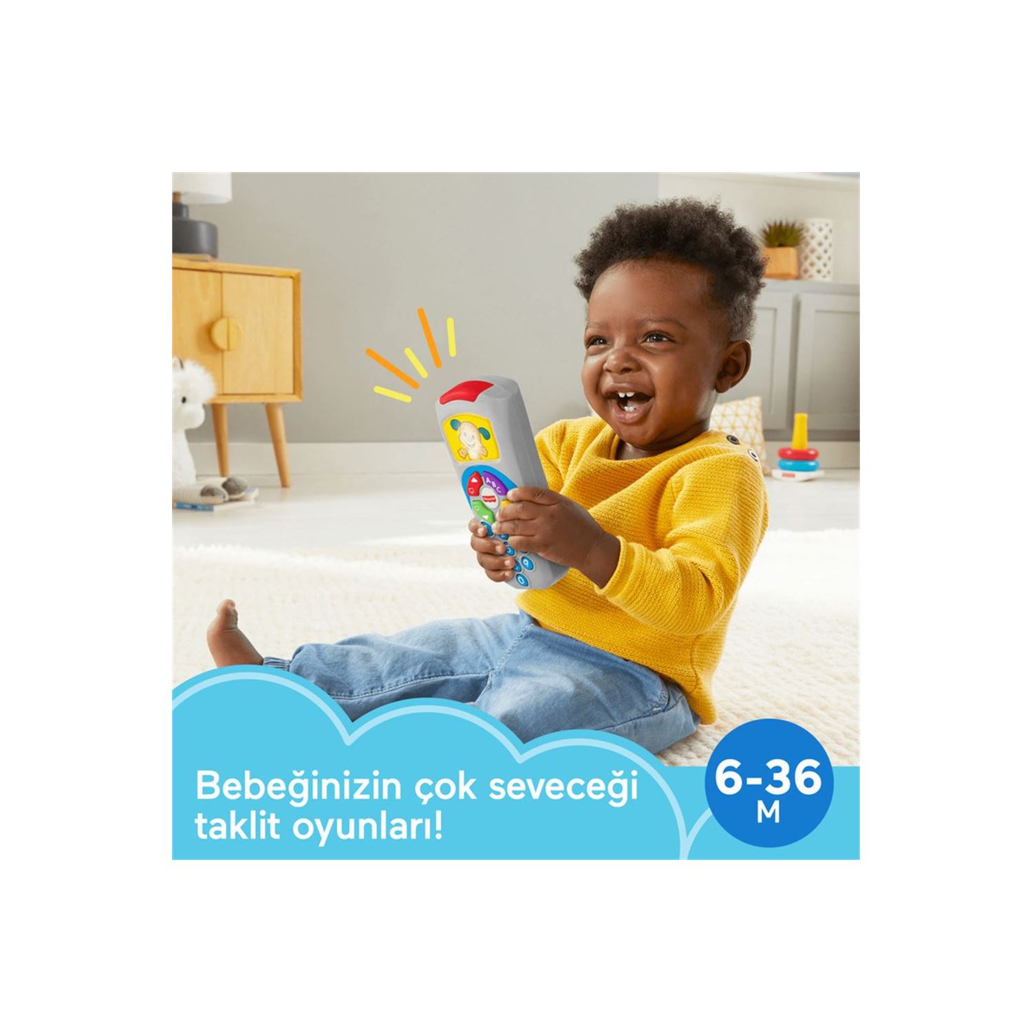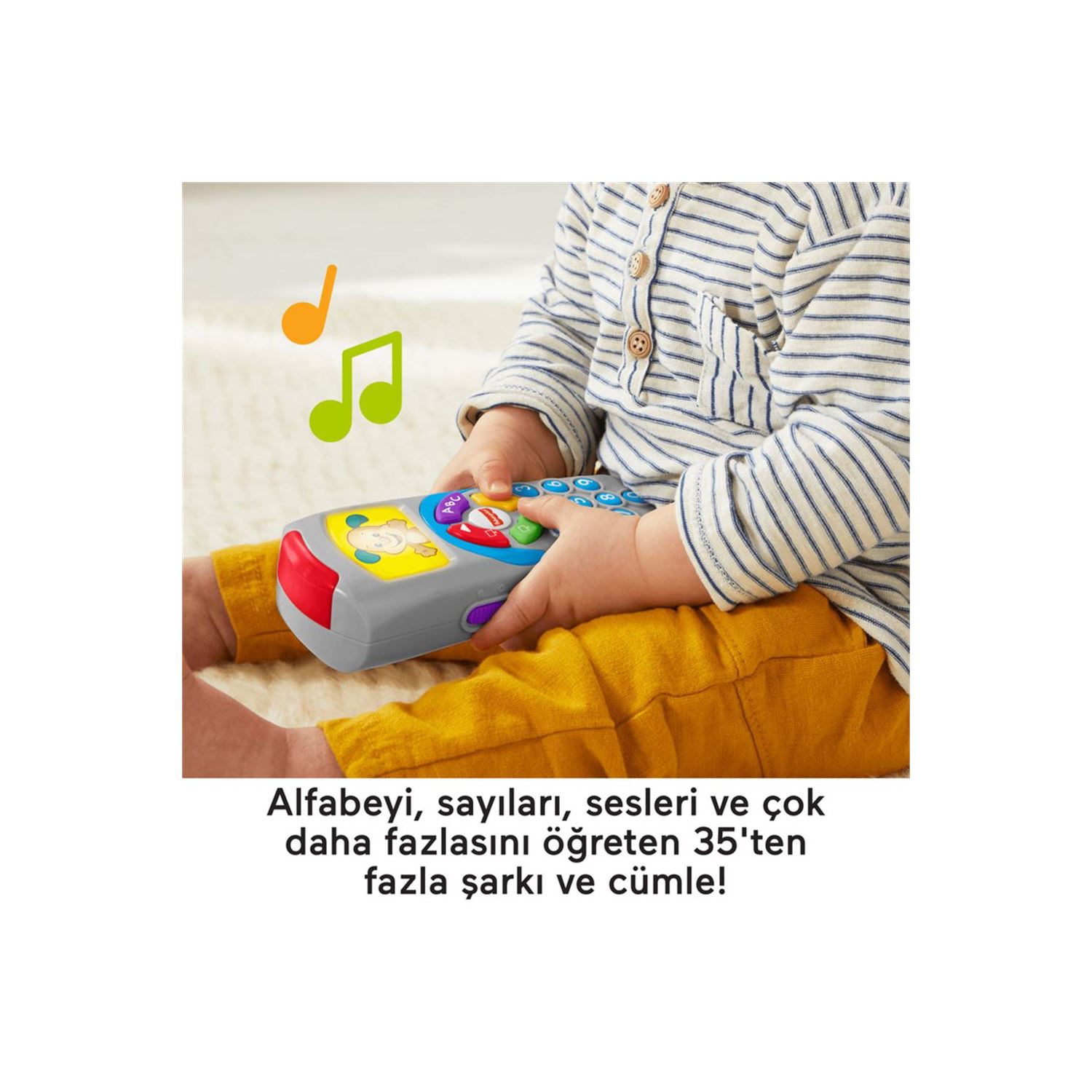 Işıklı ekranı, müzikleri, sesleri ve ses kontrol özelliği bulunan uzaktan kumanda oyuncağı** 35'ten fazla şarkı, ses ve cümle, Türkçe alfabeyi, renkleri, zıt anlamlı sözcükleri ve selamlaşma ifadelerini öğretir** Düğmelere basıldığında ışıklar ile sebep ve sonuç ilişkisini öğreten müzikler etkinleşir** Parlak renkler ve sesler, bebeğinizin görsel ve işitsel becerilerini harekete geçirir** Bu oyuncak, bebekler ve 6 ay ile 3 yaş arası çocukların ince motor becerilerini güçlendirmeye yardımcı olur ve çocukları erken yaşta canlandırma oyunları oynamaya teşvik eder.