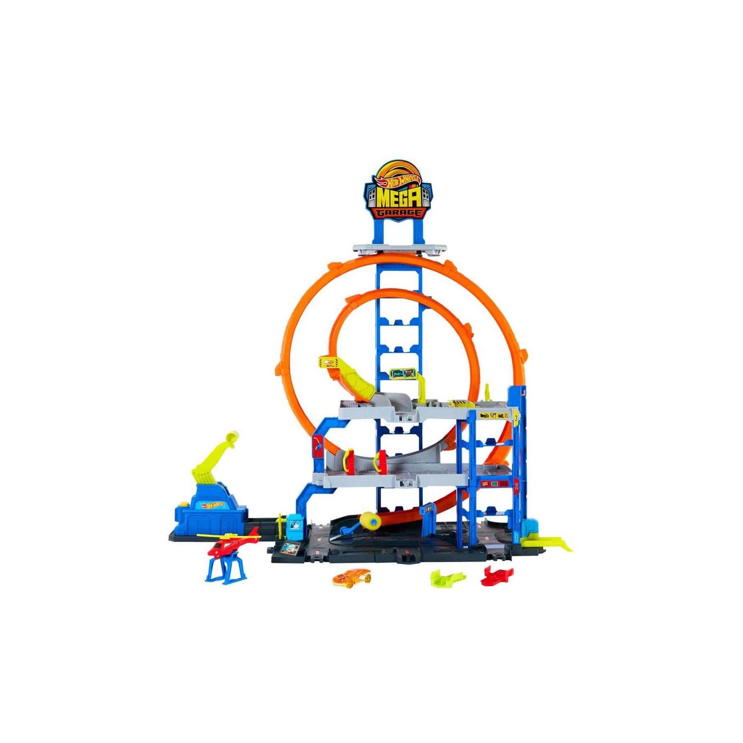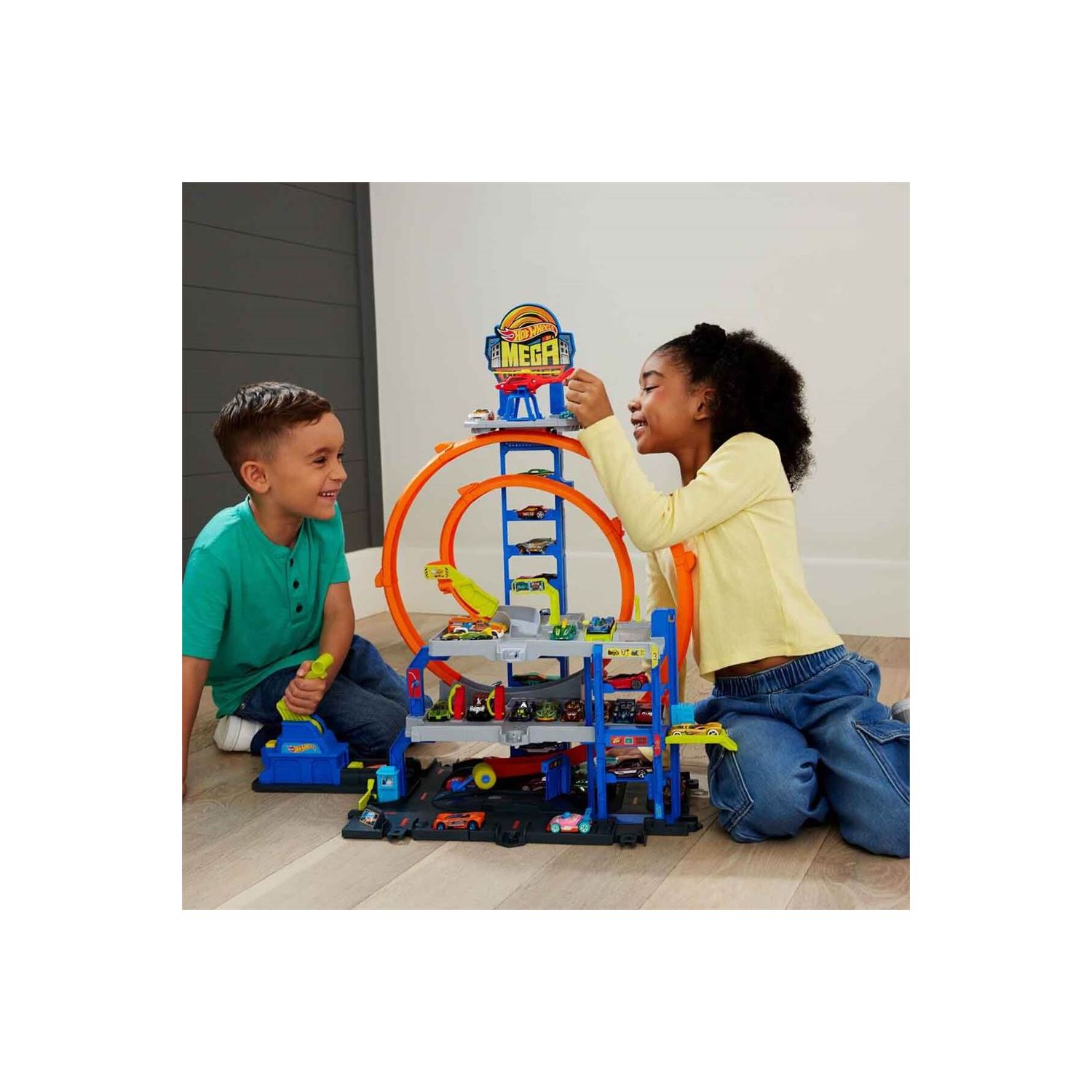 Hot Wheels City Mega Garaj oyun setinin her katında farklı bir eğlence sizi bekliyor! Üç katlı Hot Wheels City Mega Garaj Oyun Seti, genç yarış tutkunlarını arabalar ile yaratıcı hikayeler yaratmaya ve efsane akrobasi hareketleri yapmaya teşvik eder. Çocuklar arabalarını bu çok katlı setin giriş katındaki araba yıkama istasyonuna sürebilir. İstasyonda hareketli köpük silindir ve branda bulunur. Ardından arabalarını fırlatıcıya yerleştirerek çift çembere gönderebilir ve yönlendiricileri kullanarak istedikleri kata gidebilirler. Çocukların etkinleştirebileceği asansörü veya araba taşıma helikopterini kullanarak araçları dilediğiniz kata park edebilirsiniz. Kolayca birleştirilebilen pist bağlantı parçalarını kullanarak pisti uzatabilirsiniz. Çocuklar sete dahil olan Hot Wheels aracı fırlatıp çift çemberden geçirebilir ve yönlendiriciyi kullanarak arabayı istedikleri kata yönlendirebilir. Araçlarınızı hareketli köpük silindir ve branda bulunan araba yıkama istasyonuna sürerek muhteşem akrobasi hareketlerine hazırlayın. Çocuklar ikinci ve üçüncü katta araç kaldırma lifti, hortumları hareket ettirilebilen yakıt pompaları, robot onarım kolu ve ayarlanabilir kapılar gibi araç bakımına yönelik ayrıntıları keşfedebilir. 37 adet 1:64 ölçekli araç sığan Mega Garaj oyun seti hem geniş saklama alanı hem de oyuncakları havalı bir şekilde sergileme imkanı sunar. Bir adet 1:64 ölçekli metal araba ve araba taşıma aparatlı plastik helikopter dahildir. Diğer araçlar ayrı olarak satılır. Çocukların yeni hikâyeler oluşturarak hayal güçlerinin ve yaratıcılıklarının gelişmesini desteklerken onların oyun kurma ve taklit becerilerine katkı sağlar. Arkadaşlarıyla oynayacakları oyunlar sosyalleşmelerine yardımcı olur. Koleksiyon merakını desteklemeye yardımcıdır. Kutu içerisinde; Hot Wheels City Mega Garaj, 1:64 ölçekli metal araba, 1 plastik helikopter, HW City haritası ve 2 adet pist adaptörü bulunmaktadır. Kutu ölçüsü: 56 x 13,3 x 32,8 cm