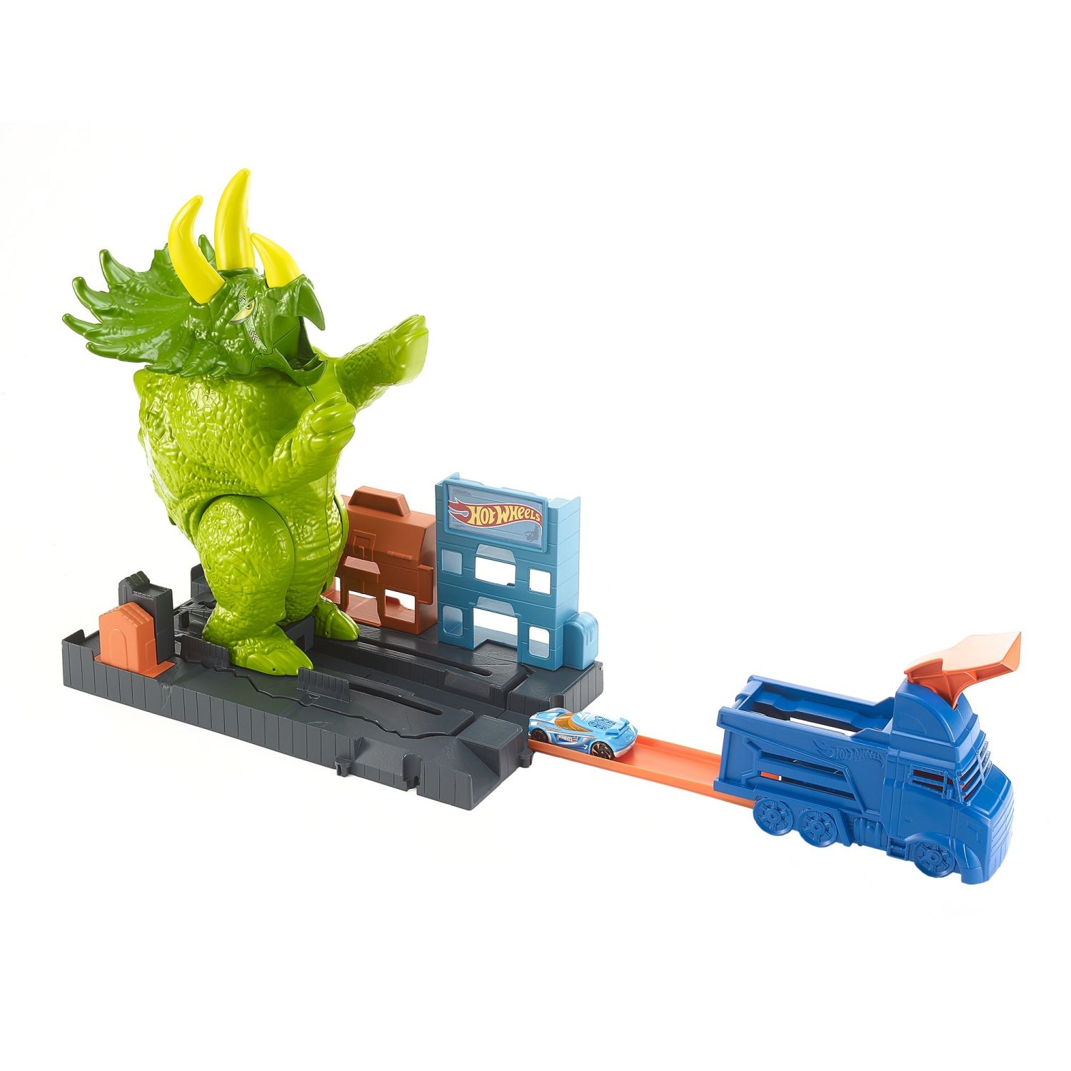 Hot Wheels™ Şehrini dev saldırgan Triceratops'tan kurtarmak için mücadele etme zamanı!
