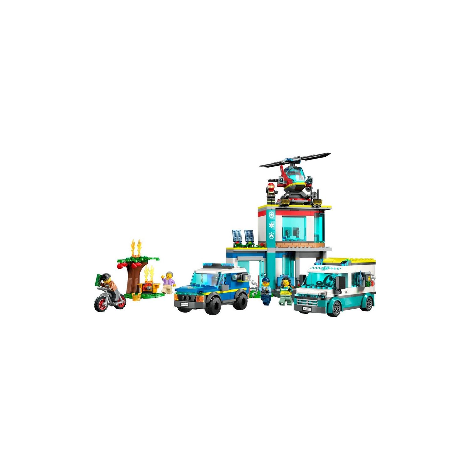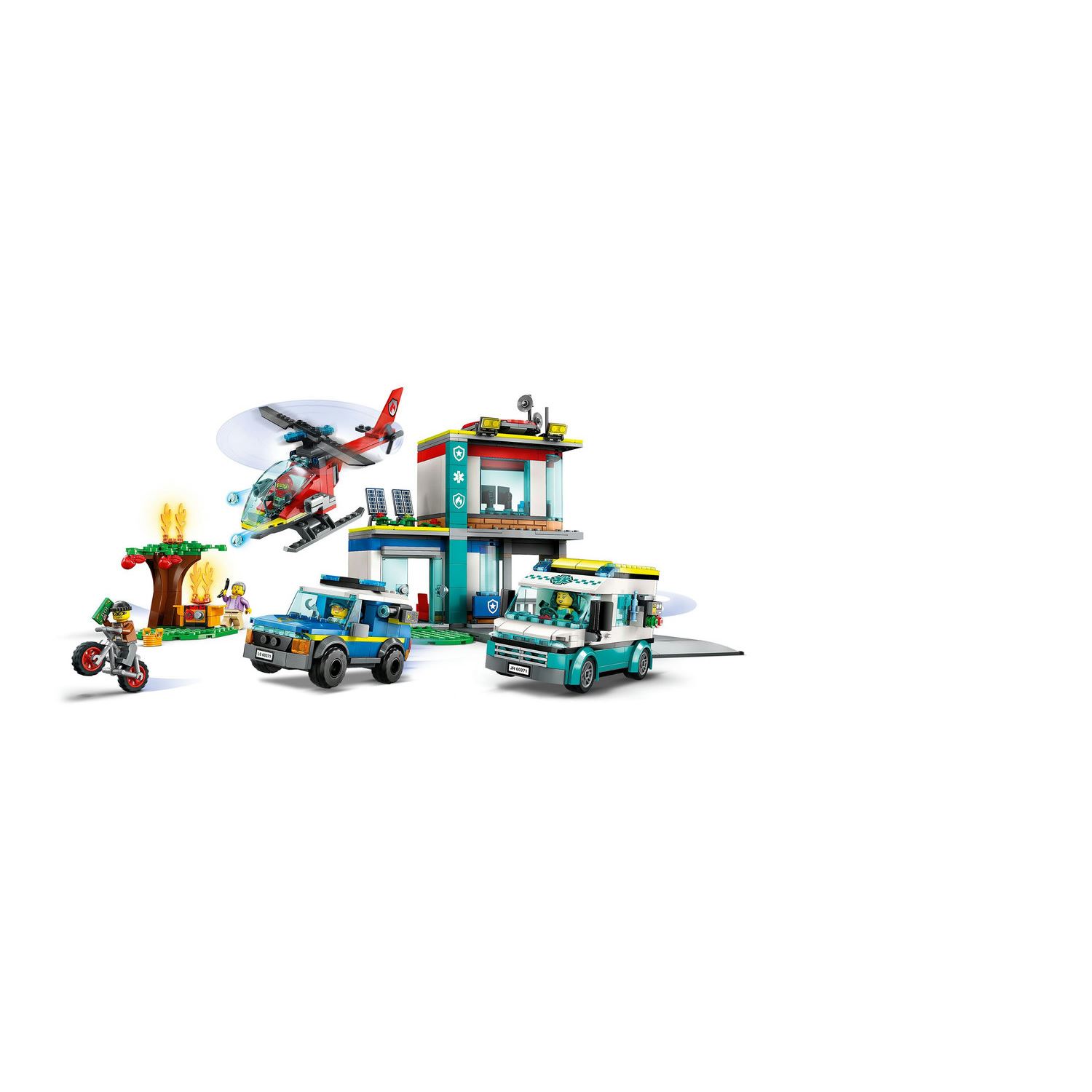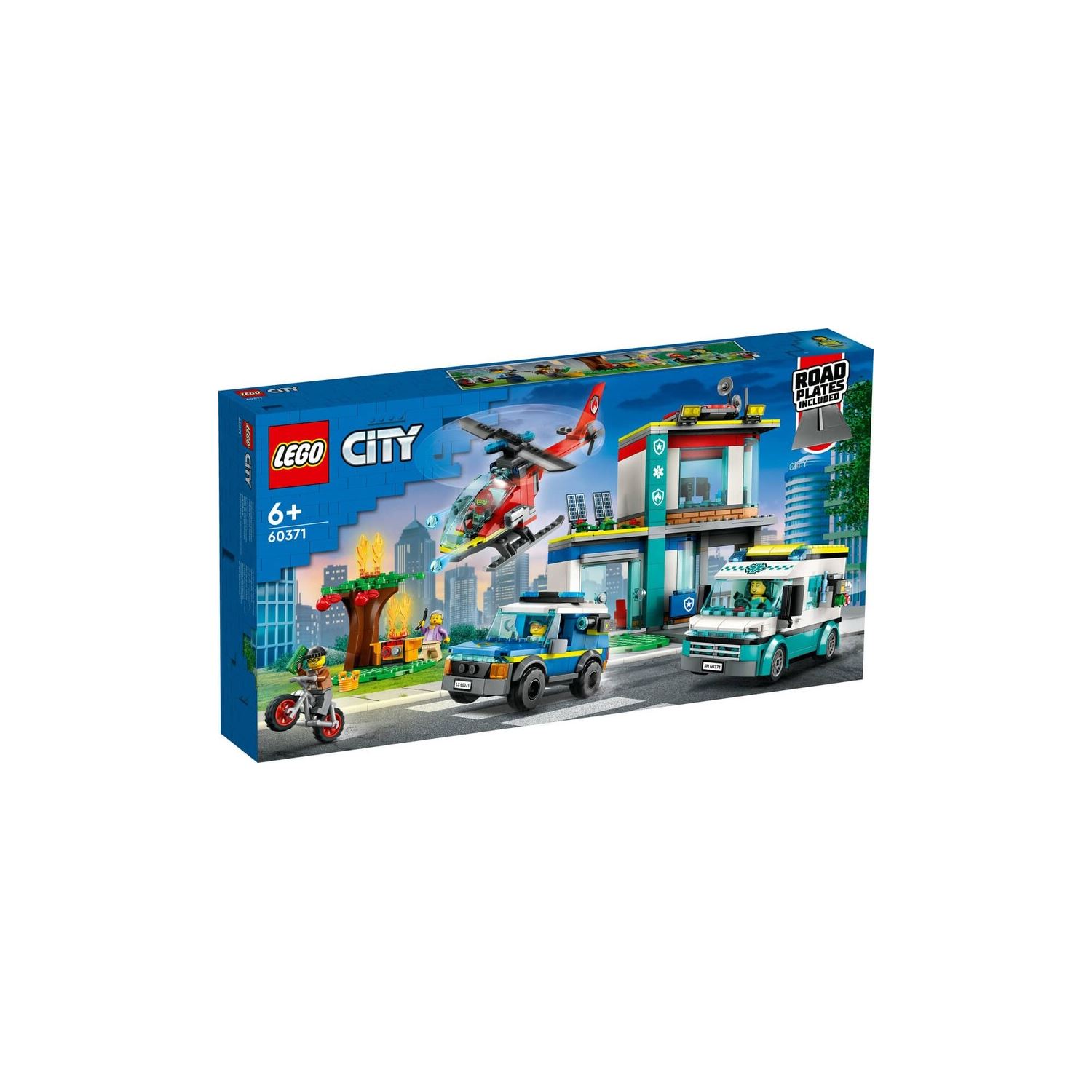 Kutuda ne var? – Çocukların oyuncak bir acil hizmetler merkezi binası, hapishaneli polis SUV’si, itfaiye helikopteri, ambulans ve hırsız motosikleti yapmak için ihtiyaçları olan her şey, ayrıca 5 minifigür;