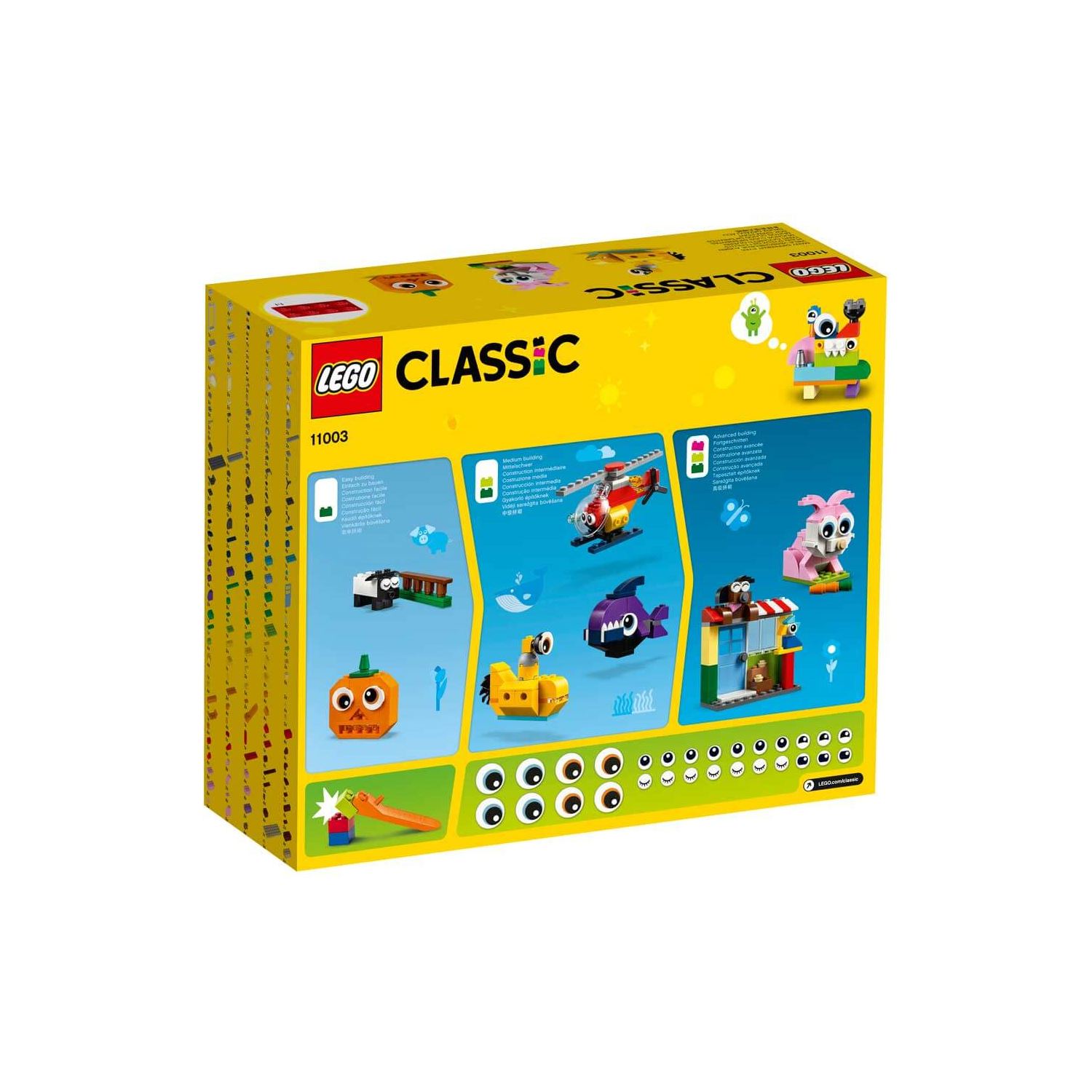 Renkler ve ifadelerde gözler içeren bu LEGO Classic 11003 Yapım Parçaları ve Gözler setiyle eğlenceli karakterler yarat ve LEGO eserlerine kişilik kat. 3 farklı düzeyde yapım zorluğu sunan bu set, mevcut LEGO setlerine harika bir ektir. Çocukların yaratıcı yapım becerilerini ortaya çıkarmak için yaşa uygun talimatlar içerir, internette daha fazla ilham verici fikirler mevcuttur