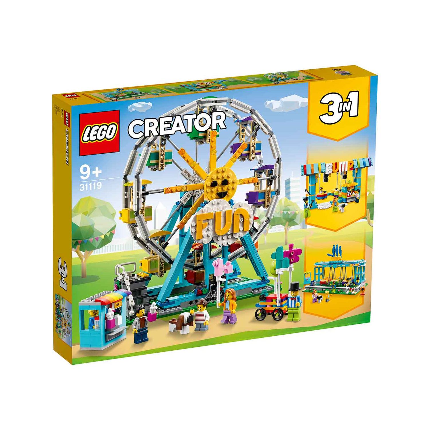 Çocuklar bu son derece detaylı LEGO Creator 3’ü 1 arada Dönme Dolap (31119) ile lunaparkta eğlence dolu bir günün keyfini çıkarabilir. Bu oyuncak yapım setinde 8 gondollu Dönme Dolap, bilet gişesi, balon hayvanlı bir balon arabası, 5 minifigür ve parçalarla yapılan köpek bulunur.Muhteşem oyuncaklar çocukların ilgilerini uyandırırÇocuklar bu süper havalı LEGO Creator 3’ü 1 arada setle 3 farklı lunapark oyuncağı yaparken eğlence hiç bitmez. Dönme Dolabı birleştirebilirler, sonra çarpışan araba oyun setine ya da büyük bir gondola dönüştürebilirler ya da yapım parçalarını kullanarak yepyeni bir şey yapabilirler.Yaratıcı oyunlar için havalı oyuncaklarLEGO Creator 3’ü 1 arada setler, her kutuda 3 modelle çocukların yaratıcı yanlarını keşfetmesini sağlar! Her model, çocuklar istediği zaman yeni bir şeye dönüşebildiği için oyun olasılıkları asla bitmez. Arabalar, hayvanlar ve uzay roketleri içeren inanılmaz 3’ü 1 arada setler arasından seçim yapın.