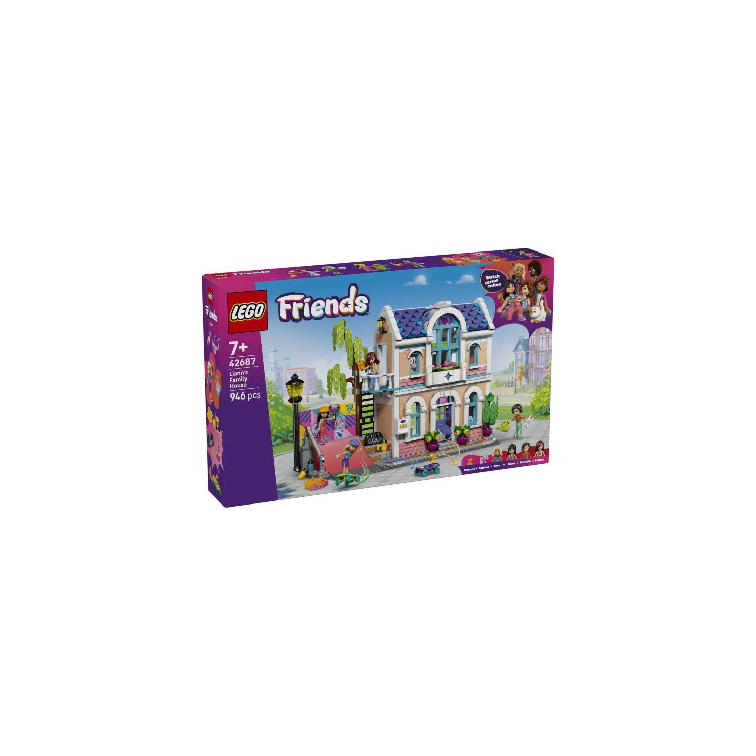 7 yaş ve üstü çocukların kendi hikayelerini yarattıkları Liann'in Aile Evi’ne (42687) hoş geldiniz. Kız ve erkek çocuklar mutfak, oturma odası, yatak odası, balkon ve bahçe içeren güzel LEGO® oyuncak evini keşfedebilirler. Liann ve arkadaşları kaykay yapıp sanatla ilgilenirken ve evcil geko ile aksolotl oyuncağına keyifle bakarken siz de farklı hobiler deneyin. Detaylı rol yapma oyuncağında 4 minik bebek ve birçok aksesuar bulunur. Kaykaylar, sanat malzemeleri, kasetçalar, masa, toprak akvaryumlar ve daha fazlasını keşfedin. Ayrıca yemek çubukları, erişte kutuları, soya sosu, süt ve portakal suyu gibi sevimli yemek aksesuarları da bulunur. Çocuklar, çıkarılabilir karoları kullanıp renkli duvar resmini özelleştirerek kendi tasarım becerilerini bile deneyebilirler. Bu set, ev oyunlarını seven kız ve erkek çocukları için yaratıcı bir hediye seçeneğidir. Çocuklar, LEGO® Builder uygulamasının kolay ve sezgisel yapım macerasıyla 3 boyutlu yapım talimatlarını kullanarak setleri yakınlaştırıp döndürebilir ve setleri kaydederek ilerlemelerini takip edebilir. Sette 946 parça bulunur.;