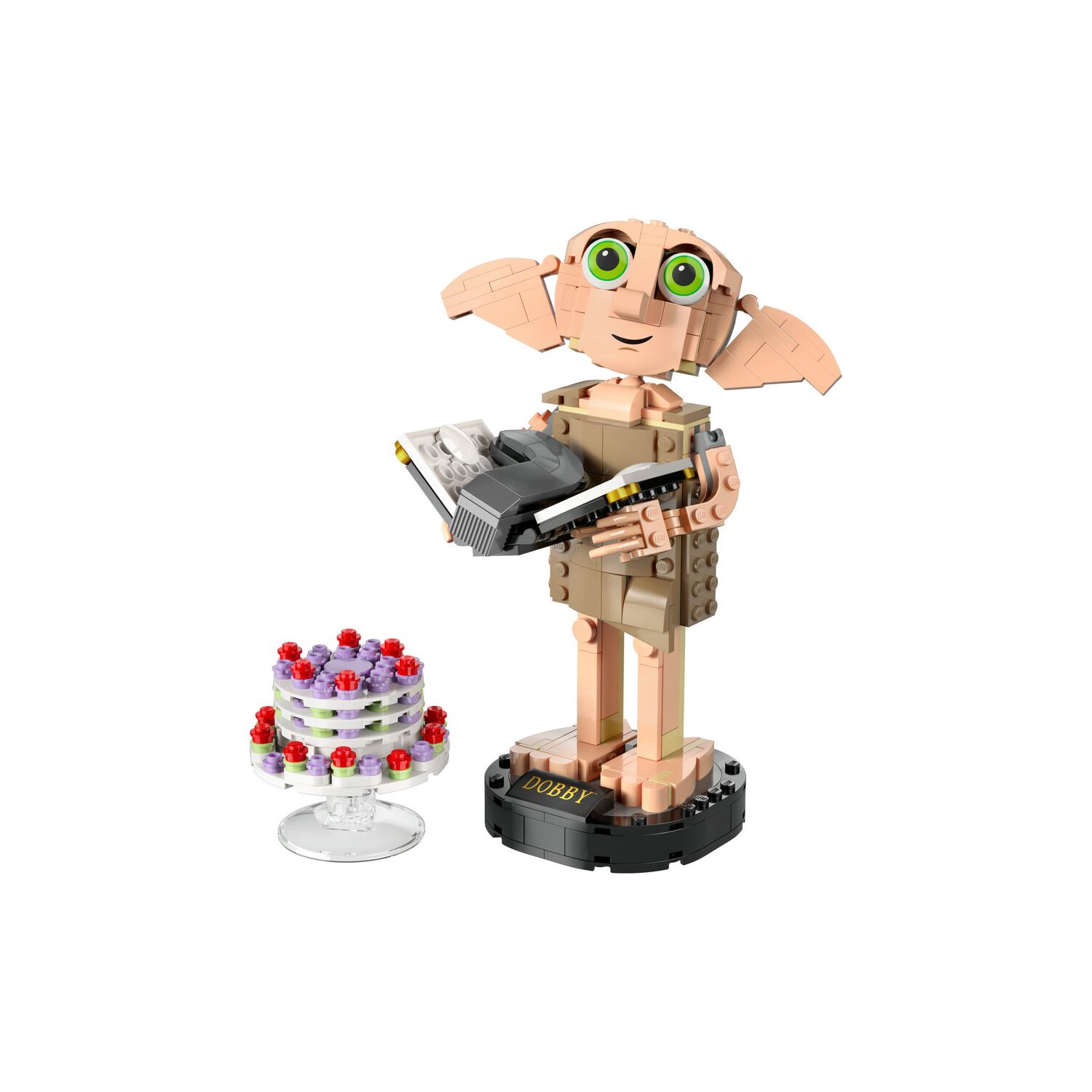 - Sergilemek için yapıldı – Dobby™ figürünü, parçalarla inşa edilen isim levhalı stantta sergileyin;