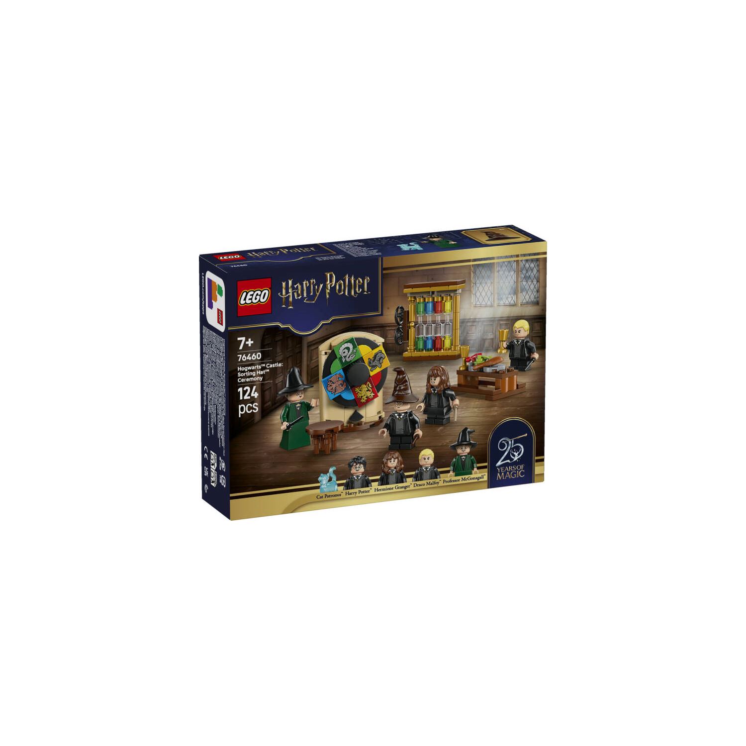 Çocuklara yönelik bu LEGO® Harry Potter™ yapım setiyle (76460) Harry Potter ve Felsefe Taşı’ndan Hogwarts™ Şatosu’ndaki Seçmen Şapka törenini yeniden yaşayın. 7 yaş ve üzeri erkek ve kız çocuklar ile hayranlar için eğlenceli bir Harry Potter hediyesi olan bu sette 4 LEGO Harry Potter minifigürü bulunur: Profesör McGonagall™, Harry Potter, Hermione Granger™ ve Draco Malfoy™. Seçmen Şapka’yı öğrencilere tek tek takın ve ‘seçme çarkını’ döndürerek hangi Hogwarts binasına katılacaklarını keşfedin. Yemek masası ve bina puanı sayacı, oyun olanaklarını artırır. Bu çocuk macera seti, 2001'de çıkan ilk LEGO Harry Potter setine (4701) saygı duruşu niteliğindedir 25. yıl dönümü koleksiyonluk Patronuslar serisinden Profesör McGonagall’ın Kedi Patronus™’unu içerir. Bu set, modüler yapım oyuncakları koleksiyonunun (hepsi ayrı satılır) bir parçası olan Hogwarts Şatosu: Büyük Salon’un (76435) içine sığar, setlerin hepsi birlikte bugüne kadarki en detaylı parçalarla yapılan LEGO Hogwarts Şatosu sahnesini oluşturur. Sette 124 parça bulunur.;