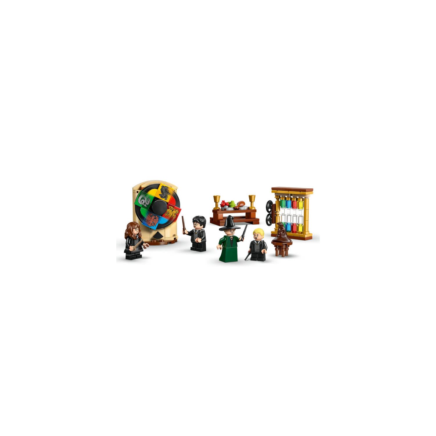 - 4 LEGO® HARRY POTTER™ MİNİFİGÜRÜ – Her biri asa aksesuarlı Profesör McGonagall™, Harry Potter, Hermione Granger™ ve Draco Malfoy™ ile Seçmen Şapka törenini canlandırın