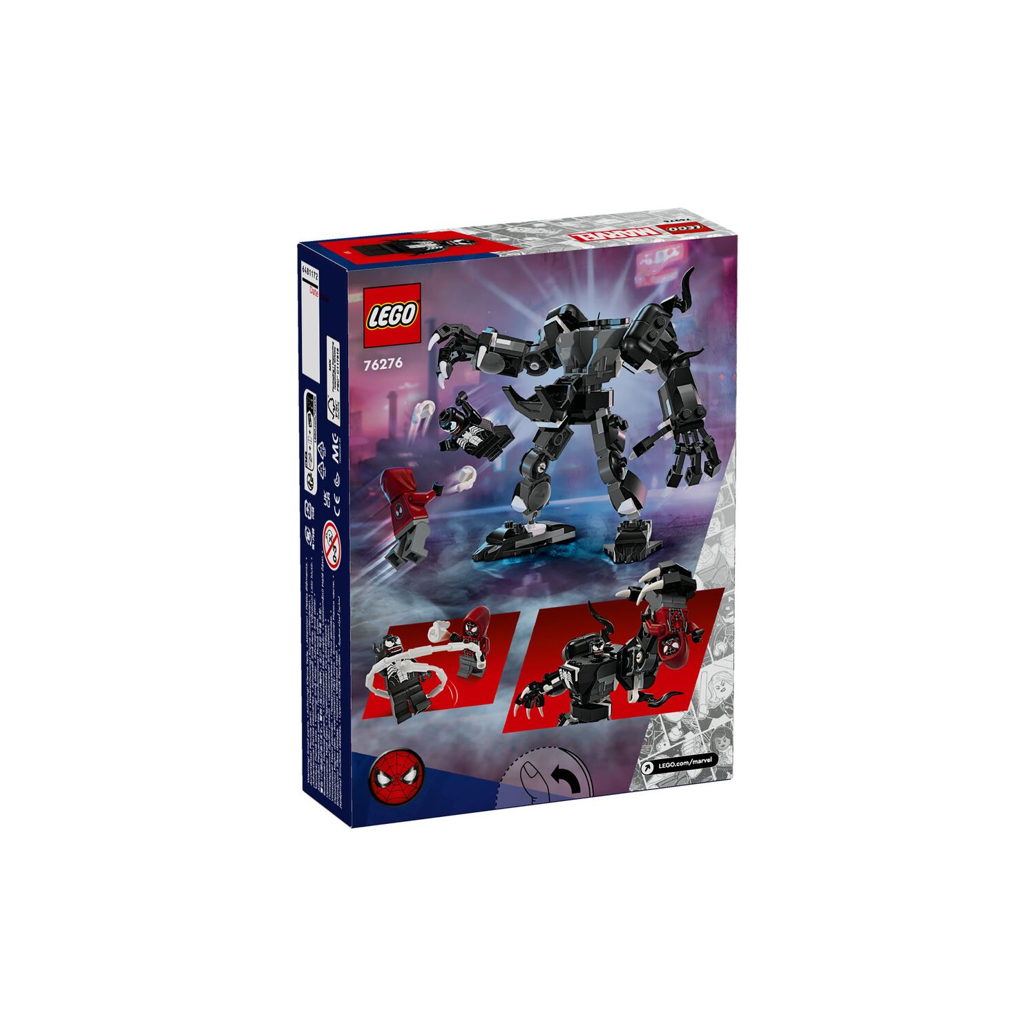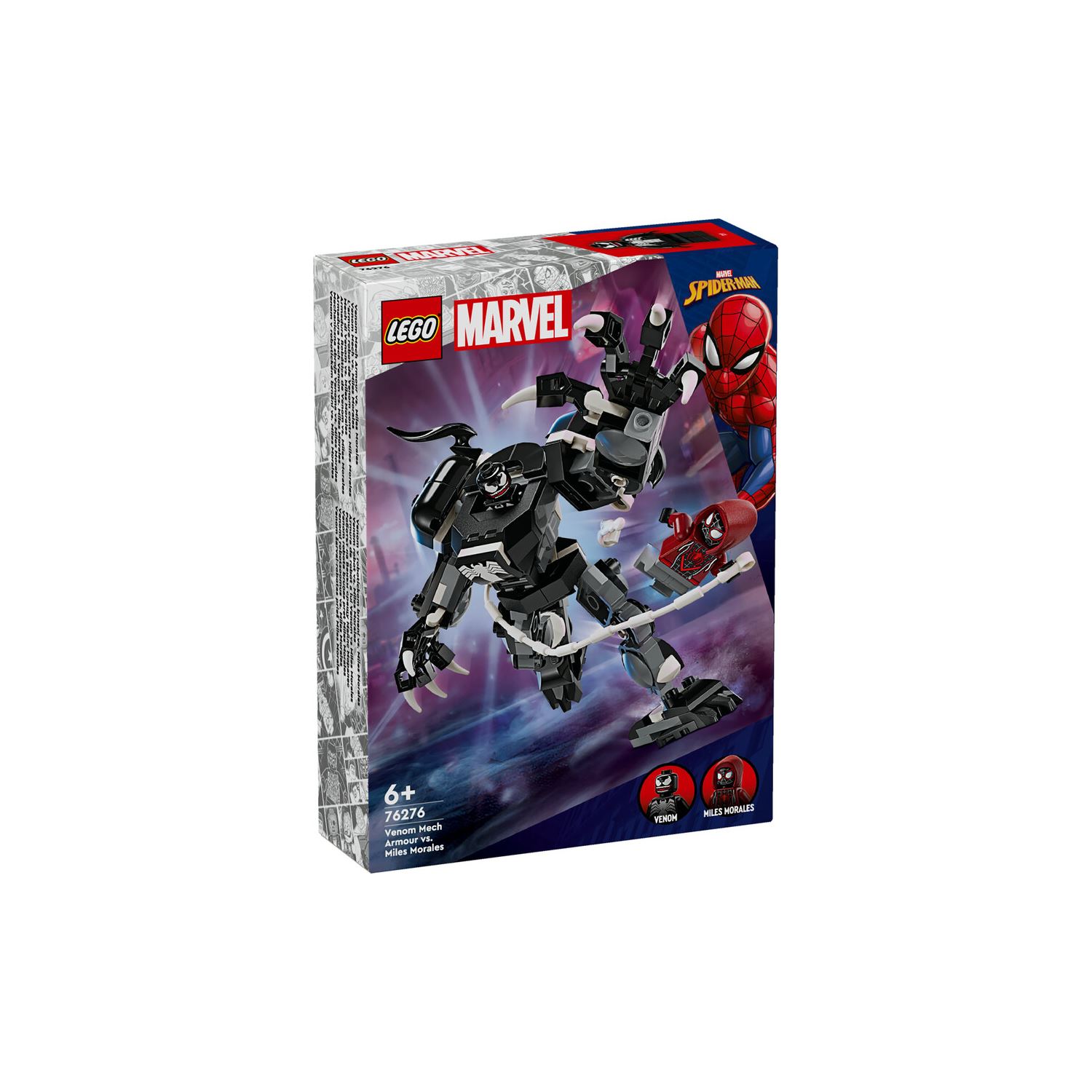 - Duruşu ayarlanabilir robot ve minifigürler – Eklemli bacakları, kolları ve parmakları olan inşa edilebilen bir robot, ayrıca Miles Morales ve Venom LEGO® minifigürleri içerir;