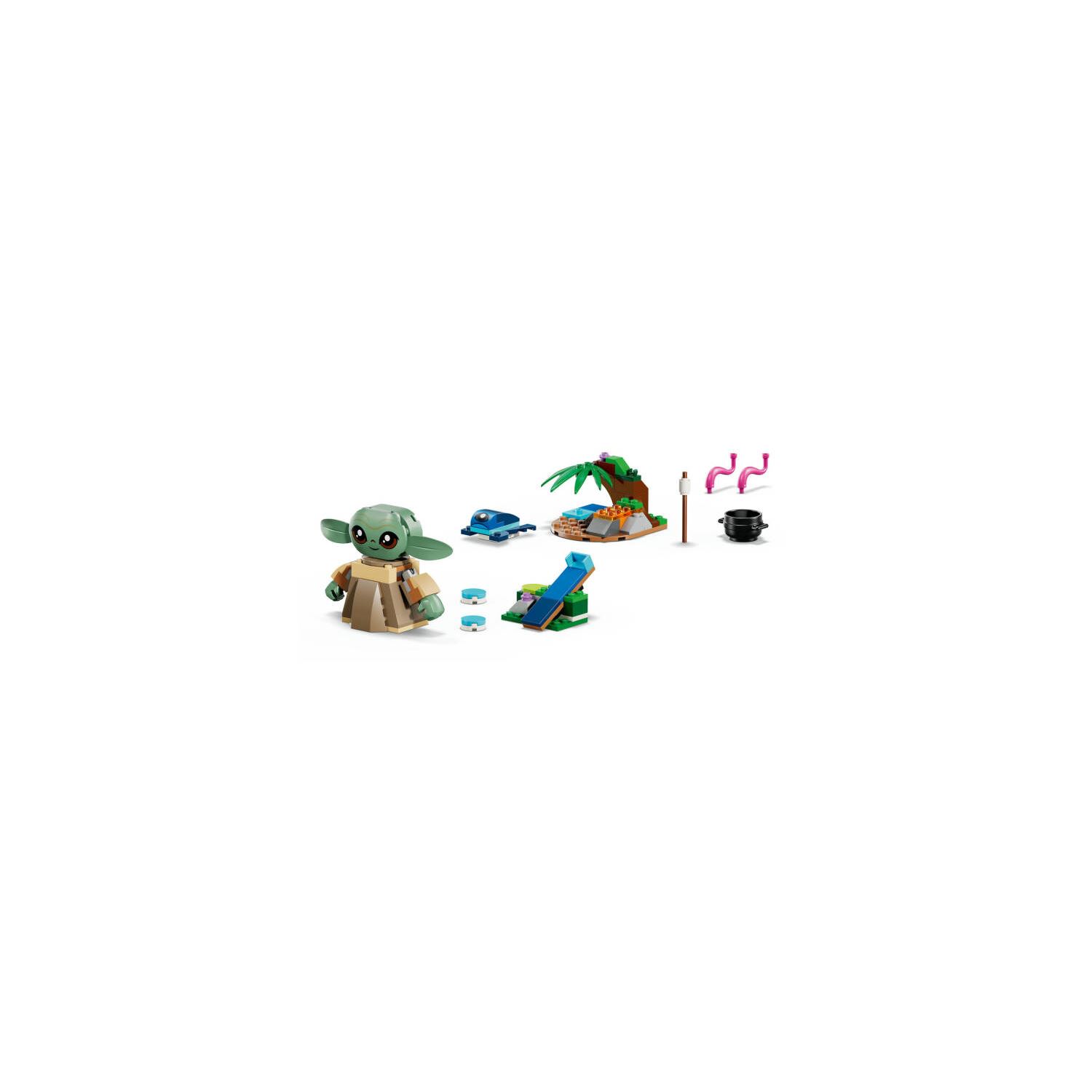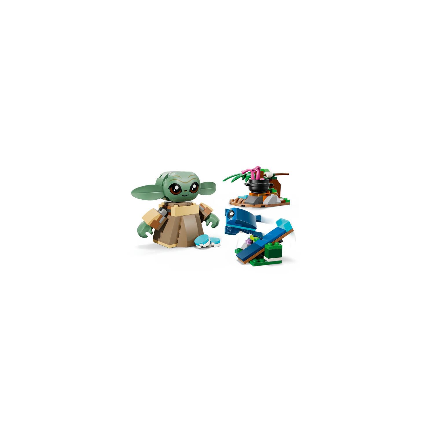 - EĞLENCELİ AKSESUARLAR – 2 dokunaç için tencereli bir şömine inşa edin, Grogu'nun eline marshmallow çubuğunu verin ve 2 makarondan birini Grogu'nun karnında bulun.