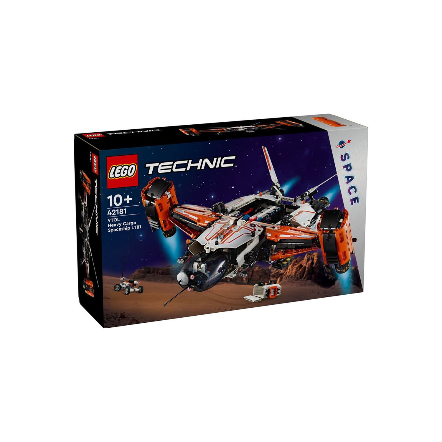 Fütüristik bir kargo uzay gemisi inşa edin – 10 yaş ve üzeri genç uzay tutkunlarının, LEGO® Technic VTOL Ağır Kargo Uzay Gemisi LT81 uzay uçağı oyuncak setini inşa edip oynarken keşfedecekleri çok şey var; Dikey kalkış ve iniş takımı – Çocuklar, hayali oyunlarla farklı gezegenlerde yaşamanın ve çalışmanın olanaklarını ve zorluklarını keşfederken, iniş takımını açıp kapatabilir; Kargoyu taşıyın – Kargo kapsülüne konularak uzayan pençeyle uzay gemisinin altına atılabilen bir mini uzay aracı içerir; Tutma sapı ve dönen motorlar – Genç uzay kaşifleri sapı tutabilir, motorları döndürebilir ve farklı uçuş manevraları yaparken otomatik seviye ayarlı kokpiti hayranlıkla inceleyebilir; Uzay temalı oyuncak – Uzay seyahatine ve fütüristik oyuncak uçaklara ilgi duyan 10 yaş ve üzeri çocuklar için eğlenceli bir hediye fikridir; Hava kilidi parçası – Özel bir uzay hava kilidi parçası ile birlikte gelir, böylece çocuklar, daha fazla uzay seyahati macerası için bu modeli diğer uyumlu uzay temalı LEGO® setlerine (ayrı satılır) bağlayabilir; Mühendisliğe giriş – LEGO® Technic setleri, LEGO severleri ulaşılabilir ve gerçekçi bir şekilde mühendislik dünyasıyla tanıştıran gerçeğe uygun hareketler ve mekanizmalar içerir; Boyutlar – Bu 1365 parçalı setteki uzay gemisinin yüksekliği 19 cm, uzunluğu 52 cm, genişliği 47 cm’dir.