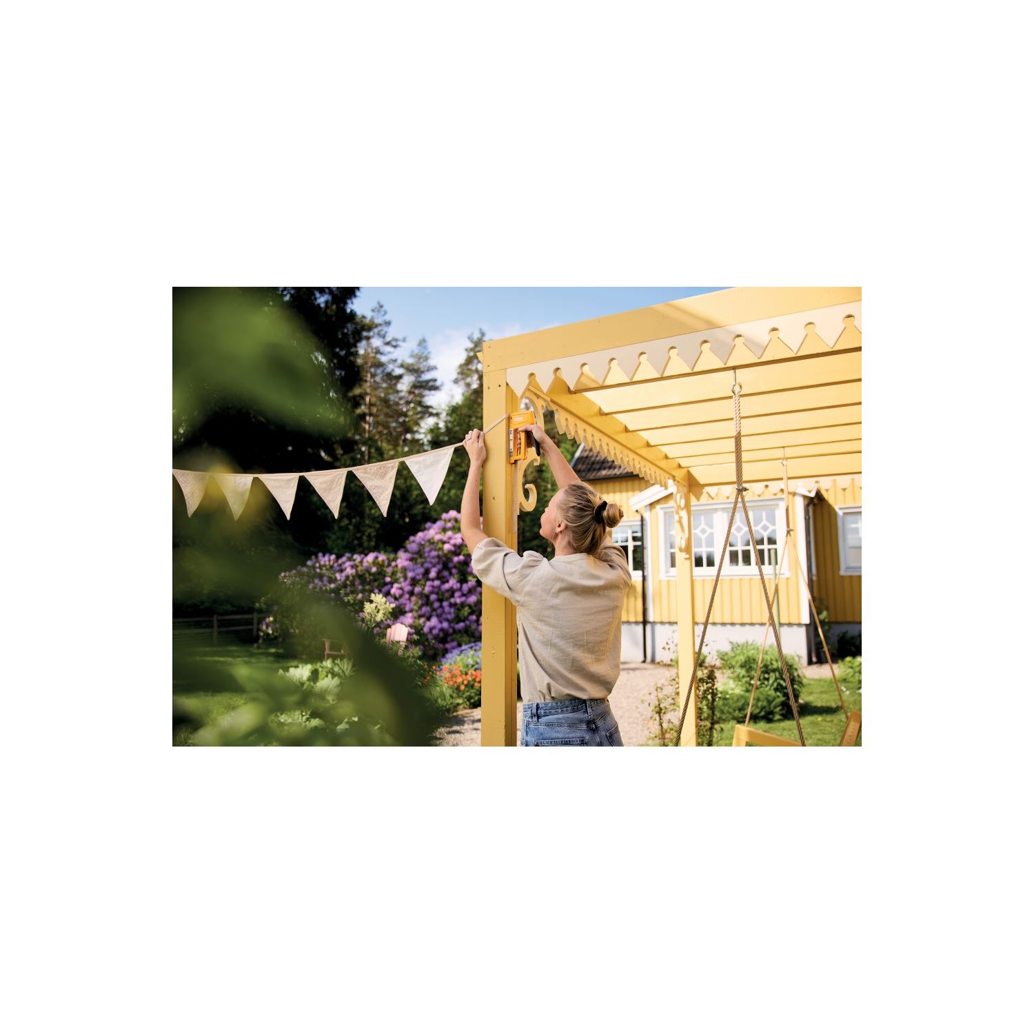 Ev projeleri ya da daha kolay profesyonel işler için hafif, kolay tutulan zımba çakma tabancası. Mobilya kumaşı döşeme, çeşitli tekstil türleri ya da etekler, posterler veya derilerin sabitlenmesi için ideal.