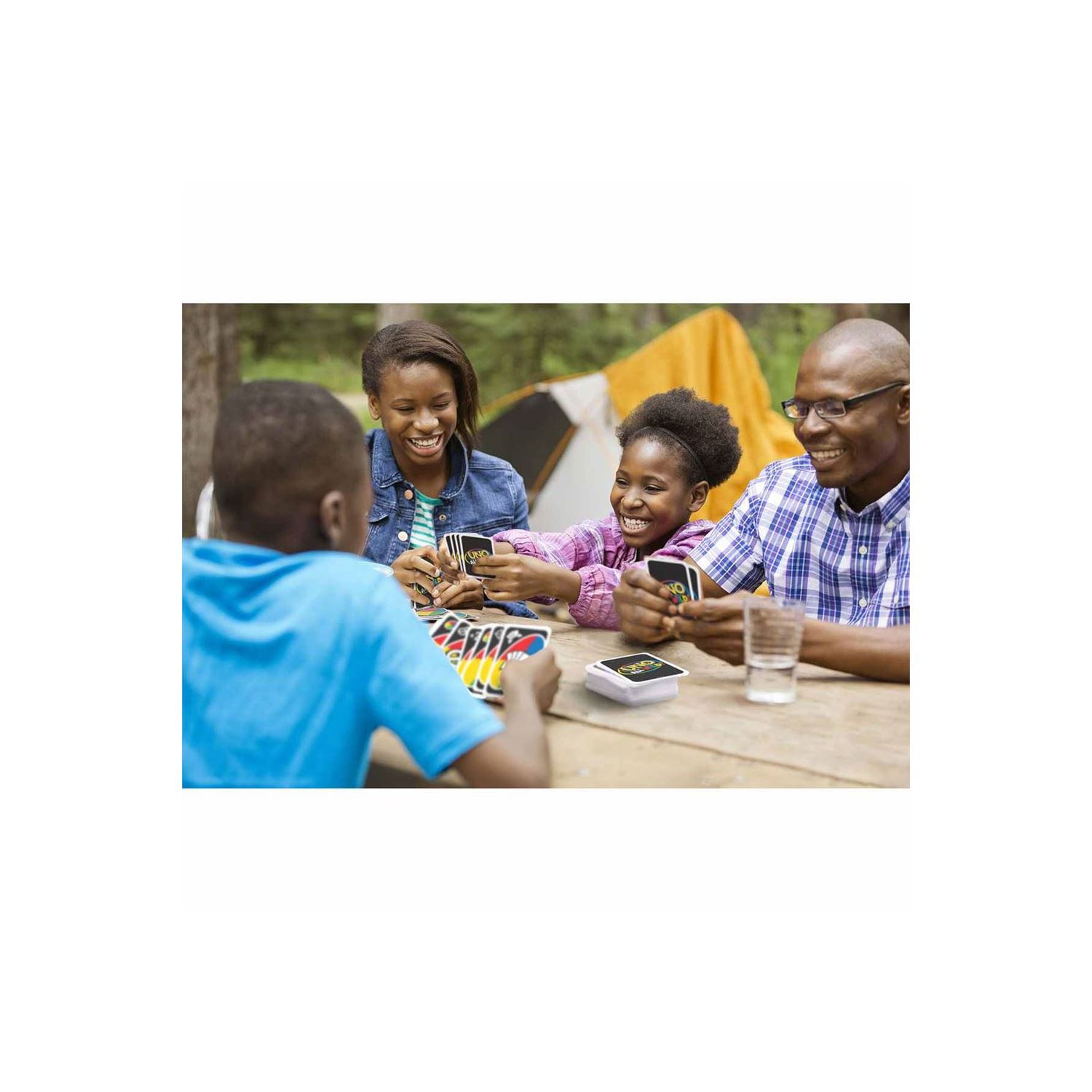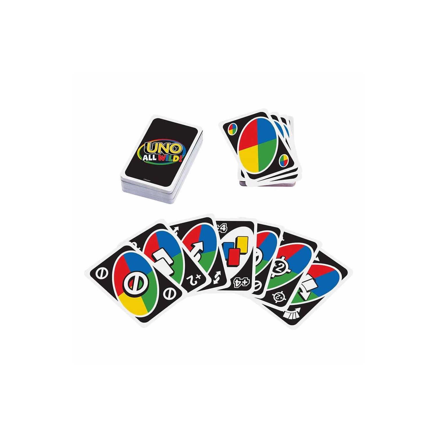 UNO All Wild kart oyunu, çocuklar, aileler ve yetişkinler için oyun gecesi oyunudur! Sevilen aile oyununun yüksek tempolu ve bilinmezliklerle dolu versiyonu UNO All Wild’ın tamamı Joker kartlardan oluşur. Klasik UNO'da olduğu gibi sayıları ve renkleri eşleştirmeniz gerekmez ancak iş burada bitmez. Özel Hareket Kartları oyunu değiştirir. "İki Pas Geç" Joker Kartı atıldığında, klasik oyundan farklı olarak iki oyuncu pas geçilir. "Zorunlu Takas" kartı atıldığında ise tüm oyuncular ellerindeki kartları takas eder. Elbette çılgın kurallar bunlarla sınırlı değil! 7 yaş ve üzeri oyuncular için harika bir hediye olan heyecan verici bu oyunu elinizden düşürmeyeceksiniz! Renkler ve süslemeler çeşitlilik gösterebilir. UNO All Wild'da her kart joker kartı! Klasik UNO’da olduğu gibi sayı ve renkleri eşleştirmeniz gerekmediğinden oyunun temposu daha hızlıdır. Destedeki hareket kartları oyunu daha da şaşırtıcı hale getirir: "Yön Değiştir" Joker Kartı, "Pas Geç" Joker Kartı ve "2 Pas Geç" Joker Kartı, "2 Kart Çek" Joker Kartı ve "4 Kart Çek" Joker Kartı, "Zorunlu Takas" Joker Kartı ve "Hedefli 2 Kart Çek" Joker Kartı. Unutmayın, oyuncuların elinde tek kart kaldığında "UNO!" diye bağırmaları gerekir!